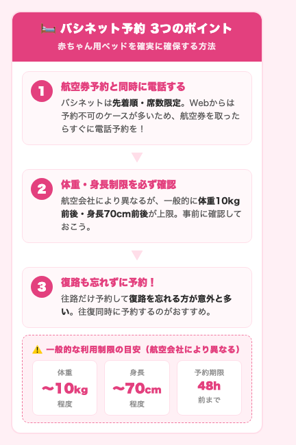 • バシネット予約(電話予約が確実!航空券と同時に)